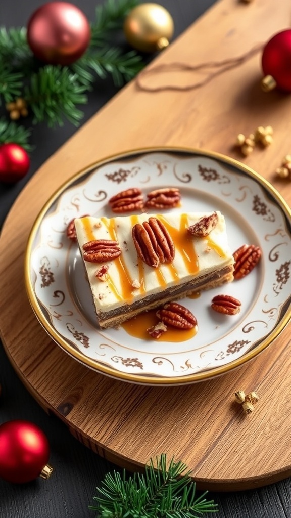- Pour the pecan mixture over the crust and bake for an additional 25-30 minutes, or until set. Let cool before slicing into bars.
